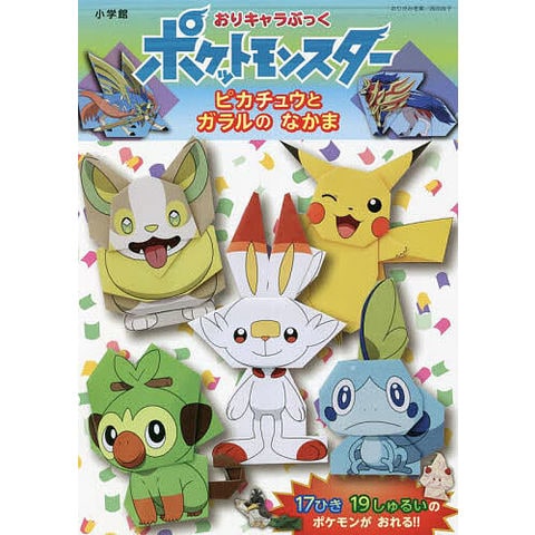 ミシン目で切り取って折ればそのままポケモンになるように印刷された折り紙の本です。ピカチュウ、ヒバニー、サルノリ、メッソン、ワンパチ、カモネギ(ガラルのすがた)、モルペコ(まんぷくもよう・はらぺこもよう)、ウッウ、ポニータ(ガラルのすがた)、マホイップ、ウールー、ヒメンカ、アーマーガア、カジリガメ、ジュラルドン、ザシアン、ザマゼンタ。表情やポースが違うものもある17匹19種類のポケモンが折れます。