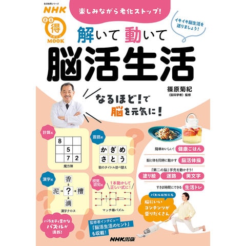 人気の脳科学者・篠原菊紀氏が監修する「脳活生活」には、漢字クロスワードや、マッチ棒パズル、間違い探しなど、脳をフル回転させる楽しいクイズが盛りだくさん。挑戦することで、今までお休みしていた脳の部分が活性化! そのほかにも、脳に刺激を与える体操や塗り絵、3D迷路、日常生活のついでにできるトレーニング、そして健康を手助けする料理レシピなど、コンテンツも盛りだくさん。この1冊で脳も体もイキイキとさせるお得な脳トレブック!