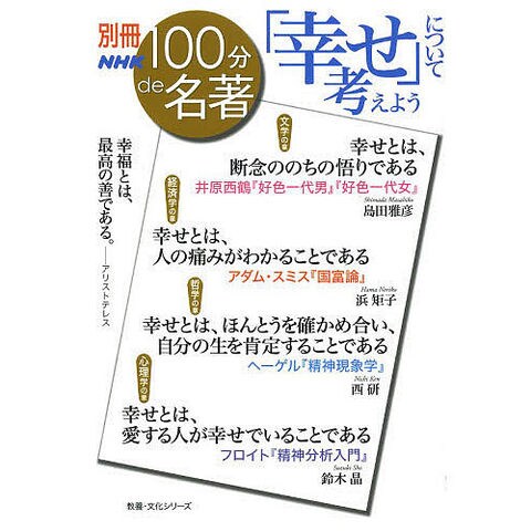 幸せになりたい。どうしたら幸せになれるのか? 文学・経済学・哲学・心理学の4分野からそれぞれ代表となる名著を紹介し、「幸せ」の正体に迫る。『NHK100分de名著』初の別冊シリーズ。