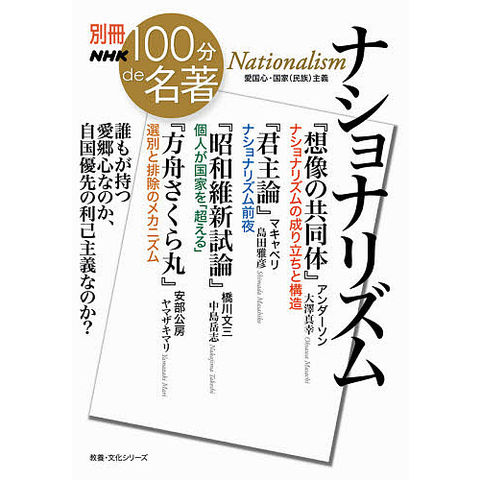 かつて「21世紀には滅んでいる」といわれたナショナリズム。ところが世界はいまも、自国ファーストや排外主義にまみれている--。今年の元旦に放送され、話題となった特別番組「100分deナショナリズム」。4人の論客がナショナリズムを読み解くための入り口となる名著を持ち寄って議論した。大澤真幸氏が『想像の共同体』(ベネディクト・アンダーソン)を、中島岳志氏が『昭和維新試論』(橋川文三)を、島田雅彦氏が『君主論』(マキャベリ)を、ヤマザキマリ氏が『方舟さくら丸』(安部公房)を。この番組をベースに追加取材をして編んだ本書は、これら4つの作品を通して「国民・国家」とリアルな「わたし」との関係を考えてゆく。
