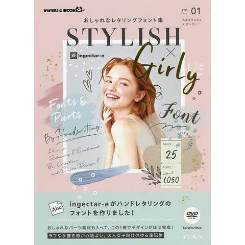ingectar‐eがハンドレタリングのフォントを作りました!おしゃれなパーツ素材も入って、この1冊でデザインがほぼ完成!ラフな手書き感が心地よい、大人女子向けのゆる筆記体。