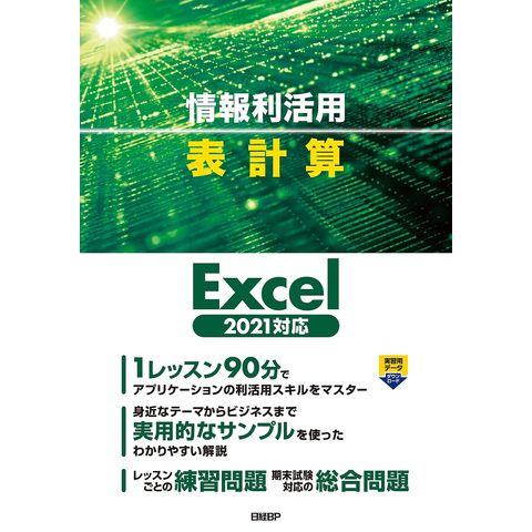 「情報利活用」は、15コマ20時間でアプリケーションの利活用スキルをマスターするシリーズです。本書は、実習用データを操作しながらExcel 2021の基本操作から応用的な機能までの操作方法を解説しています。基本的な表作成や関数を活用した集計表、グラフの作成、データベース機能を活用したデータの抽出、集計、分析など実際に作成する機会の多い文書をサンプルとして使用しているので、学生生活やビジネスシーンで役立つ効率的な操作やルールを同時に身に付けることができます(Excel 2019、Excel 2016でもほぼ問題なく本書で学習できます)。各レッスンの最後および巻末に、習熟度がわかる練習問題があります。