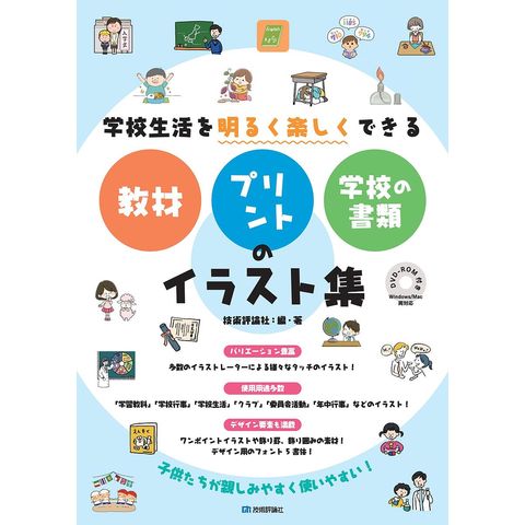 小学校・中学校向けのDVD付イラスト集。素材の収録カテゴリは、【学習教科】【学校生活】【学校行事】【クラブ・委員会活動】【季節・年中行事・自然】【文字】【文字・罫・ワンポイントアイコン】とし、イラストを約2000点収録します。素材のテイストは、ネットで無料配布されているものとは、一線を画する低学年から高学年まで対応できる幅広いテイスト、デザインのイラストです。素材はすべて、カラー版、モノクロ版を用意し、収録データはPNG形式となっており、Word、Excel、PowerPointでの操作解説付きです。先生の配布するプリントだけでなく、パソコンを使った授業などでもご利用いただけます。