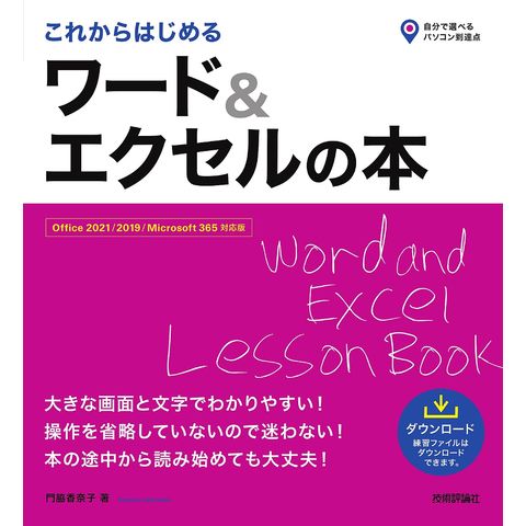 Word・Excel をはじめて使う人を対象に、ファイルを開く/閉じる、文字の入力、表計算、グラフの作成、印刷などの基本操作をやさしく説明しています。また、Excelで作成した表をWordの文書に貼り付けて使う方法も解説します。各章で学習に利用するサンプルファイルはダウンロードできるので、実際に操作をしながら学習することができます。