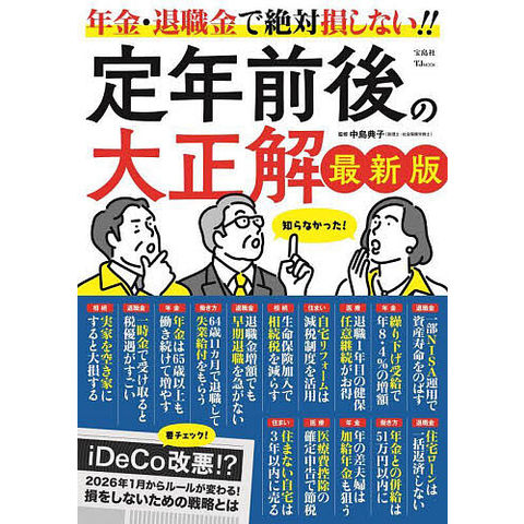 最新の制度改正情報も掲載! これから定年を迎える人、退職後の生活に不安がある人に向けて、定年前後に得する方法を教えます。退職金、働き方、年金、節税、相続など、気になるテーマに分けて、その選択で得する人と損する人を比較し、その大正解をプロが指南します。