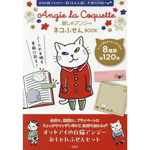 オッドアイのおしゃれな白猫アンジーのふせんBOOKが登場。