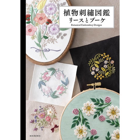 草花モチーフの中でも人気の高いリースとブーケの図案集。春夏秋冬のリースとブーケを複数の作家によるサンプラーで紹介しています。