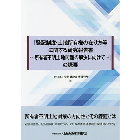 「登記制度・土地所有権の在り方等に関する研究報告書~所有者不明土地問題の解決に向けて~」の概要/金融財政事情研究会