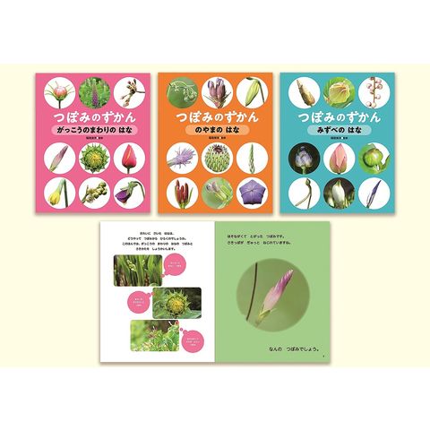 咲いている花だけでなく、つぼみの形やつぼみから花になるようすなど、咲くまでの過程を紹介する美しい図鑑シリーズ。
