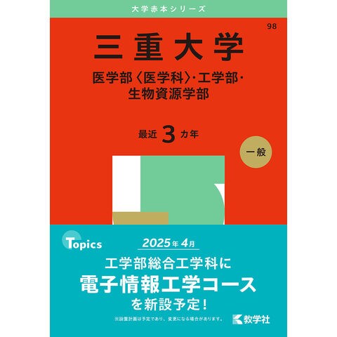 三重大学 医学部〈医学科〉・工学部・生物資源学部 2025年版