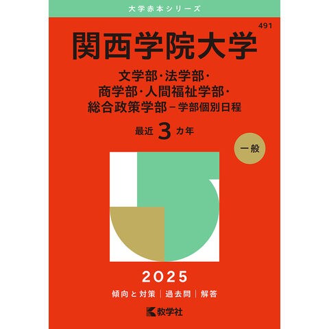 関西学院大学 文学部・法学部・商学部・人間福祉学部・総合政策学部-学部個別日程 2025年版