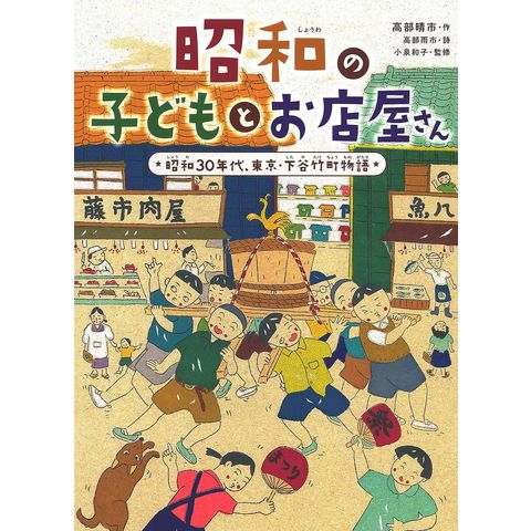 絵本作家の高部晴市氏が育った、昭和30年代の東京の下町のくらしと、貧しくとも逞しく元気だった子どもたちの姿を、生き生きと描いた1冊。とうふ屋、駄菓子屋、風呂屋など懐かしのお店を、当時の思い出と共に解説します。絵に添えられた詩は、高部氏と共に育った双子の弟、高部雨市氏による書き下ろし。味のある絵とユーモラスな詩で、甘酸っぱい「昭和ノスタルジー」がここに甦ります。
