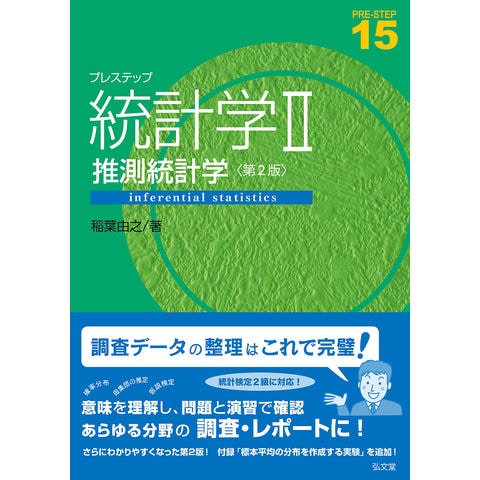既刊『統計学I 記述統計学』では中学数学の知識で統計の基礎を学習しましたが、発展編にあたる本書では、確率や確率分布の学習から母集団の推定や仮説検定まで、より専門的な統計数値の扱いを学びます。解説を読むだけでなく、書き込み式の問題や確認テストで確実に知識の定着が図れるように工夫されています。