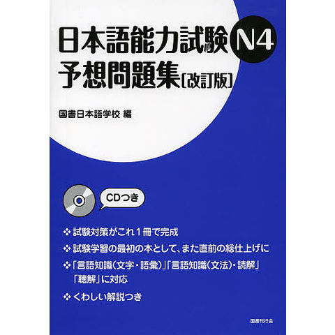 試験対策がこれ1冊で完成。試験学習の最初の本として、また直前の総仕上げに。「言語知識(文字・語彙)」「言語知識(文法)・読解」「聴解」に対応。くわしい解説つき。