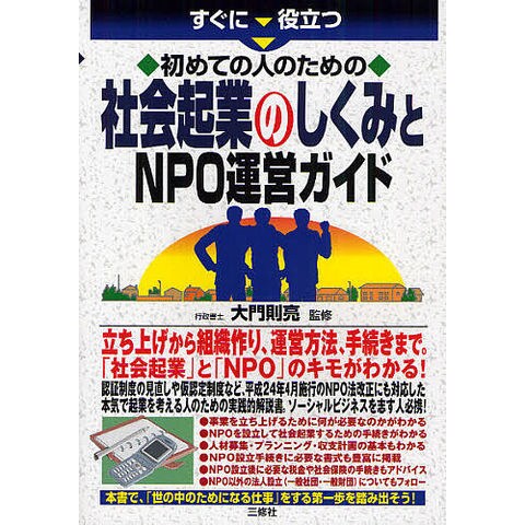 立ち上げから組織作り、運営方法、手続きまで。「社会起業」と「NPO」のキモがわかる。認証制度の見直しや仮認定制度など、平成24年4月施行のNPO法改正にも対応した本気で起業を考える人のための実践的解説書。ソーシャルビジネスを志す人必携。