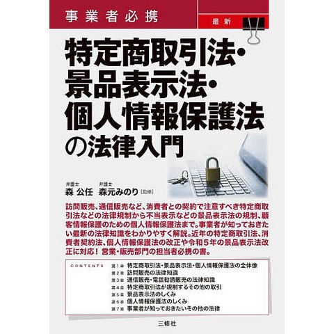 事業者必携最新特定商取引法・景品表示法・個人情報保護法の法律入門/森公任/森元みのり