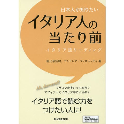 「朝食が甘いって本当?」「イタリア人はマザコンが多い?」「マフィアってイタリア中にいるの?」イタリア人の友達や先生に聞きたいけれど…。そんな今さら聞けない基本的なことから、長年勉強していても今ひとつ納得できないでいたことまで、100の疑問を解消します! 知りたくて読むからリーディングスキルがつく! すぐに使える会話例も掲載。