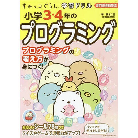 新学習指導要領で導入のプログラミングの基本を、すみっコぐらしとパソコンいらず、クイズ感覚でお勉強。かわいいシールが78枚。