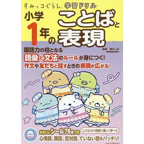 ひらがな・カタカナの確認からスタートし、気持ちを表すことば、似ている意味のことば、反対の意味のことば、ようすを表すことばなど、小学1年生が身につけたい、語彙と文法を学習します。