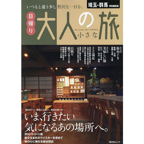 「いつもと違う少し贅沢な1日」をテーマにした大好評“日帰り大人の小さな旅”シリーズの埼玉県&群馬県版。「大人の街めぐり」、「美味しい旅」、「大人の遠足」などのほか、今行きたい最旬の話題の場所を巻頭で特集。心と体を整える「赤城や渋川周辺」でのリトリート旅や世界から注目をあつめるウィスキーを楽しむ「秩父」の旅など、最旬の「今行きたい大人の日帰り旅」を紹介します。
