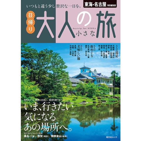 「いつもと違う少し贅沢な1日」をテーマにした大好評”日帰り大人の小さな旅”シリーズの東海・名古屋版。「時代をたどるレトロ散歩」、「大人の遠足」、「大人の街めぐり」、「大人の美味しい旅」の4つのテーマで気軽な日帰り旅の提案をしています。北陸新幹線延伸で人気の「敦賀」、歴史さんぽとグルメが楽しめる「桑名」、絶景と秘境駅めぐりが楽しめる「天竜峡」など、魅力の「今行きたい日帰り旅」を紹介します。