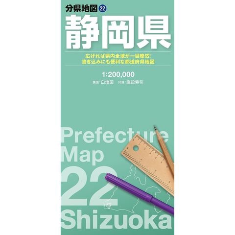 『分県地図』は、短辺62cm×長辺88cmの大判紙に各都道府県の全域を収録している折り畳み地図です。紙を広げて俯瞰で見ることができるので、ネットやスマートフォンの地図では分かりづらい都道府県全域の様子が一目でわかります。ペンで書き込んだり、シールを貼ったりして、オリジナルの地図にカスタマイズするのにも最適です。