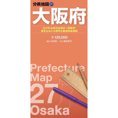 『分県地図』は、短辺62cm×長辺88cmの大判紙に各都道府県の全域を収録している折り畳み地図です。紙を広げて俯瞰で見ることができるので、ネットやスマートフォンの地図では分かりづらい都道府県全域の様子が一目でわかります。ペンで書き込んだり、シールを貼ったりして、オリジナルの地図にカスタマイズするのにも最適です。