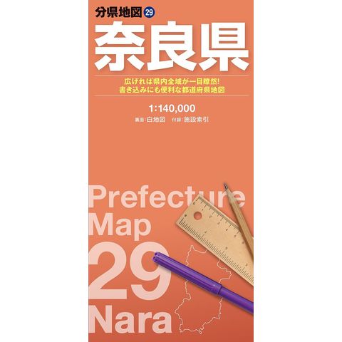 『分県地図』は、短辺62cm×長辺88cmの大判紙に各都道府県の全域を収録している折り畳み地図です。紙を広げて俯瞰で見ることができるので、ネットやスマートフォンの地図では分かりづらい都道府県全域の様子が一目でわかります。ペンで書き込んだり、シールを貼ったりして、オリジナルの地図にカスタマイズするのにも最適です。