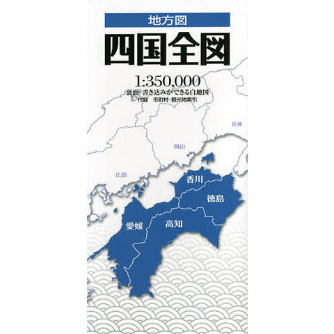 徳島県、香川県、愛媛県、高知県を1枚の大判紙の地図で収録しており、各都市の距離感や位置関係を把握しやすい地図です。