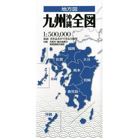 裏面は市区町村界入りの白地図になっており、書き込みに便利です。また、別紙付録で沖縄県および南西諸島広域図を収録しています。