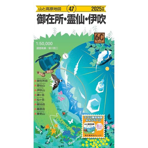ご購入の『山と高原地図』2025年版の出版物と同じエリアの「山と高原地図ホーダイ」アプリが、半年間無料でご利用いただける購入者特典が付きます。一覧性に優れる紙地図に、現在地がすぐにわかる電子地図を加えることで、より便利に、安全に、山行をお楽しみください。