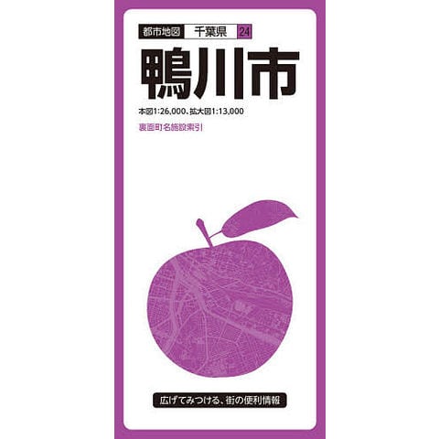 鴨川市の全域を1 26、000図で、鴨川市中心部をより詳しい1 13、000図で収録しています。裏面は書き込んで使える白地図となっています。また裏面には町名索引と施設索引を収録し、役所、官公署、公共施設などの検索に便利です。