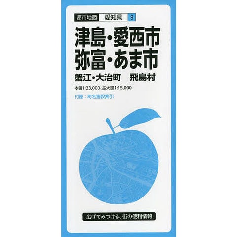 津島市、愛西市、弥富市、あま市、蟹江町、大治町、飛島村を含む範囲を1 33、000で収録し、津島市・愛西市、弥富市、蟹江町の中心部を1 15、000の拡大図で収録しています。