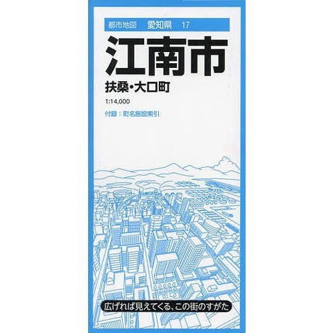 江南市、扶桑町、大口町のほぼ全域を1 14、000の縮尺で掲載しています。裏面は書き込んで使える白地図となっています。付録にて町名及び市役所や官公署ほか生活に便利な施設の索引を掲載しています。