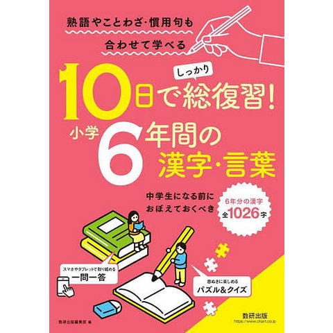 小学校で学ぶ1026の漢字とあわせて、コラムではことわざ・慣用句、故事成語などの言葉を、効率的に10日で総復習。毎日テーマを設けて、学習目標をはっきり意識させることで、お子さま1人でスムーズに学習できます。楽しいパズル&クイズ!毎日、学習した漢字や言葉を使ったパズルやクイズがあるので、最後まで楽しく取り組めます。スマホやタブレットでできる一問一答クイズ!本誌に掲載されたQRコードを読み取るだけで利用でき、お子さまの習得度の確認に役立ちます。専用アプリのダウンロードは不要です。中学のあらゆる授業は、小学校で学んだ漢字や言葉が身についていることを前提として授業が進みます。しっかり漢字・言葉を復習することで、中学生活のスタートダッシュに繋がります。