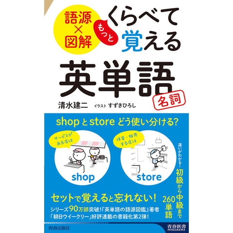 大好評!くらべて覚える英単語集の第二弾。第一弾の動詞編の次は名詞編。サービスもある店はshop、保管・販売する店はstoreなど、似ている意味の単語を「くらべて」セットで覚えると忘れない!大ベストセラー『英単語の語源図鑑』著者の「朝日ウイークリー」好評連載を新書化!初級から中級まで厳選260単語を収録。楽しく使い分けが学べるクイズ付き【イラスト 『英単語の語源図鑑』のすずきひろし】