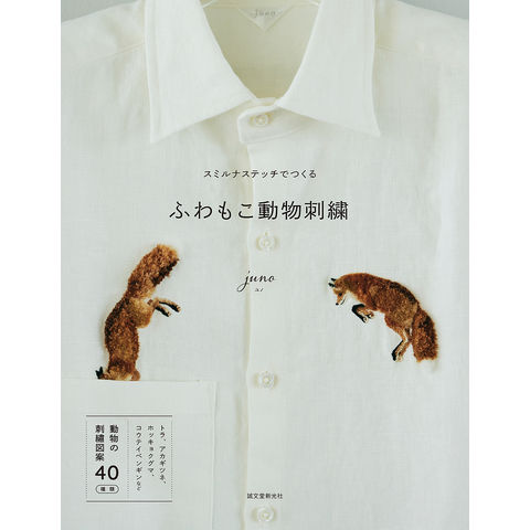 junoさんは、キツネ、ヤギ、リスなどの動物を生き生きと表現する刺繍作家。この本ではハイイロオオカミ、オランウータン、ダチョウ、マヌルネコなど野生動物を中心にスミルナステッチを用いて刺繍をしてもらいました。クッション、バッグ、シャツなど身近なものに刺してみてください。