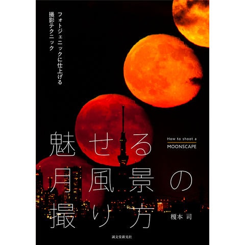 月と桜を撮る/月と山を撮る/月と海を撮る/月とランドマークを撮る/パール富士を撮る/朔望月を撮る/満月を撮る/細い月と地球照を撮る/糸のように細く欠けた月を撮る/ブルーアワーの月を撮る/奇岩と月を撮る/砂漠の月を撮る/月と古代遺跡を撮る/高原の月を撮る/ヒマラヤの月を撮る/月と火山を撮る/皆既月食を撮る/月食と風景を撮る/月出・月入帯食を撮る/惑星食を撮る/恒星食を撮/月と惑星の共演を撮る/月と彗星の共演を撮る/月と天の川を撮る/月をパノラマで撮る/ソフトフィルターで星や月を強調する/月の光跡を撮る/月の大気光学現象を撮る/月による薄明光線を撮る/月と国際宇宙ステーションを撮る/月とオーロラの共演を撮る/昼間の月を撮る/部分日食、金環日食を撮る/皆既日食を撮る/皆既日食と風景を撮る