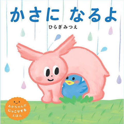 雨の中、とりさんがぬれながら、ぽつんと座っています。そこへ、やってきたのはうさぎさん。「わたしがかさになるよ」と、とりさんの上に重なって雨から守ります。すると、いぬさんやくまさんやぞうさんまで「かさになるよ」とやってきて…。どんどん重なっていくどうぶつたちがかわいい絵本。リズミカルな言葉の繰り返しが、赤ちゃんの自然な発語にもつながります。