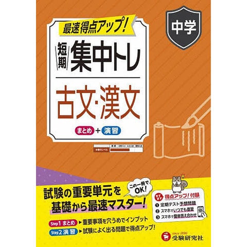 「中学 短期集中トレ 古文・漢文」は、基礎をマスターして平均点以上をめざす問題集です。