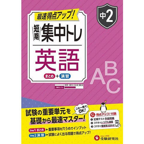 「中2 短期集中トレ 英語 」は、基礎をマスターして平均点以上をめざす問題集です。