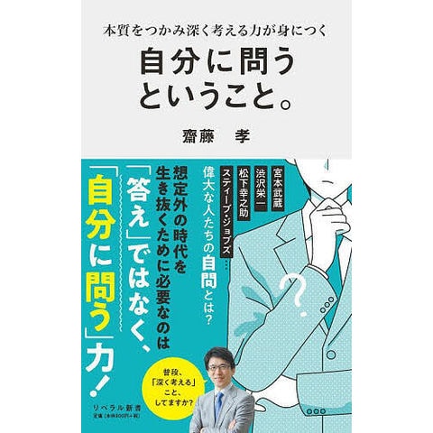 知りたいことはスマホですぐに手に入る便利な時代。一方で、物事について深く考る機会が少なくなりつつあります。結果、「考える人」と「考えない人」の二極化が進み、仕事や教育で成果を上げる人はいつも「考える人」です。「考える人」が成果を上げる理由、それは、自分に問う習慣、つまり自問をしているからです。自問することで、本質をつかみ深く考える力が身につきます。本書は、テレビでもお馴染みの齋藤孝先生が実践している自問の方法、そして人生が変わるほどの効果について解説します。