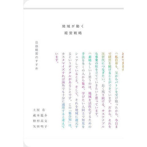 本書はコミュニティナースという実践を軸に、今日本各地で静かに、しかし着実に遂行されている新しい経営戦略「公益経営」の実像に迫ります。