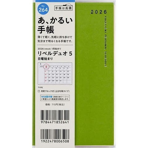 リベルデュオ 5 [ビーンズベルデ] 手帳判 マンスリー2026年1月始まり No.264