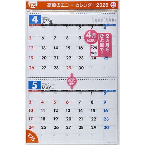T75:エコカレンダー壁掛B4×2面