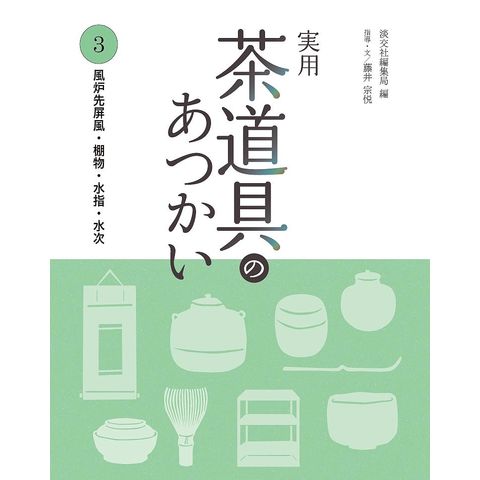 茶道具は普段の稽古より基本的なあつかいを身につけることが大切です。このシリーズでは、稽古をはじめられた方から長く続けている方まで、道具のあつかいを見つめなおす際のよりどころとされる内容づくりを目指します。風炉先屏風は点前座の据え方や棚物とのバランスの取り方を解説します。また、棚物は小棚のあつかいを中心に、点前座への据え方や荘り付、仕覆をおく位置、水の注ぎ方など基本となるあつかいを、イラストをまじえながらやさしく解説します。水指は、水をはるときの注意点や、平水指や葉蓋、釣瓶などあつかいのあるものを中心に。水次は薬鑵と片口の準備、風炉・炉のあつかいの違いを紹介、解説します。