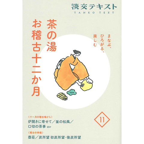 2022年の淡交テキストは毎月の稽古場で出会うモノ、コトから、茶の湯のまなびや楽しみをひろげるシリーズです。《11月の稽古場から》《稽古の準備》では、稽古場風景と「壺荘・炭所望」の準備を取り上げた上で、それらに関連する「開炉に寄せて・開炉の菓子・雲錦・口切の茶事・茶壺と茶人・茶壺と石臼の役割・炭をつぐ要点・炭と茶人」について、Q&Aなどで楽しく掘り下げます。その他、当月に活躍する意匠の《11月に活躍する茶道具》や、茶人の日常によく起こる出来事を描く4コママンガ《茶人あるある》、また歌舞伎役者片岡亀蔵夫人・片岡明美氏による暮らしの中の茶の湯エッセイ《まずは一服》「紅葉狩」をまじえ、稽古の一助となる充実の内容でお届けします。