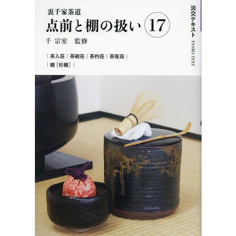 コンパクトになることでお稽古前のおさらいや、普段の予習復習にも役立ちます。≪点前≫では、基本となる平点前からはじまり、季節の点前や茶箱、立礼など基本的な点前を毎月解説し、点前のワンポイントもお伝えします。続く≪棚の扱い≫では、歴代家元のお好みの棚と扱いを写真をまじえて紹介。17号は茶入荘、茶碗荘、茶杓荘、茶筅荘の四つの荘物を解説します。棚は玄々斎好の杉棚です。