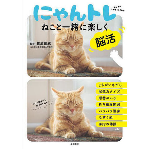 ねこの写真やイラストだらけの、かわいい脳活ドリル。まちがいさがしや各種パズル、計算やことわざ・漢字の問題、ナンプレやめいろ、なぞり絵や手指の運動まで、ワーキングメモリをきたえる問題を中心に、脳の活性化を促すさまざまな脳トレが満載! 設問の種類が豊富であらゆる方面から脳をきたえることができ、難易度も3段階に分かれているので使いやすい。誌面のあらゆるところにねこが出てきて、癒されながら楽しく脳トレできます。これまで脳トレに興味がなかった人でも、ねこと一緒なら始めてみたくなること間違いなし! の一冊です。
