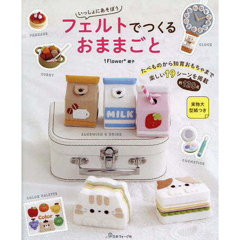 1flower*(ワンフラワー)としてインスタグラム等で作品を発表する大人気の造形作家綾子さんのフェルトのおもちゃの本。作品ラインナップは、パンケーキ、サンドイッチ、カレー、DIY工具、メディカルセット、知育遊びの要素を盛り込んだソーイング、絵合わせ、時計、三つ編み遊びなど楽しいシーンを揃えています。親子やお友達といっしょに遊んで楽しく、学びの要素もある内容です。作者の大きな特徴でもあるパステル調やくすみカラーのフェルトを取り入れたフェルト手芸の魅力がいっぱい詰まったスペシャルな1冊です。